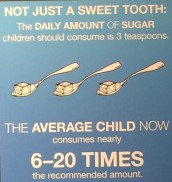 The daily amount of sugar children should be consuming is 3 teaspoons. The average child now consumes nearly 6 to 20 times the recommended amount. (I’m positive I only had 3 teaspoons as a child thanks to my upbringing, but now that I’m a full-grown adult, I’ve been known to go crazy with the sugar at times.)