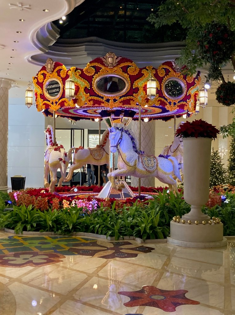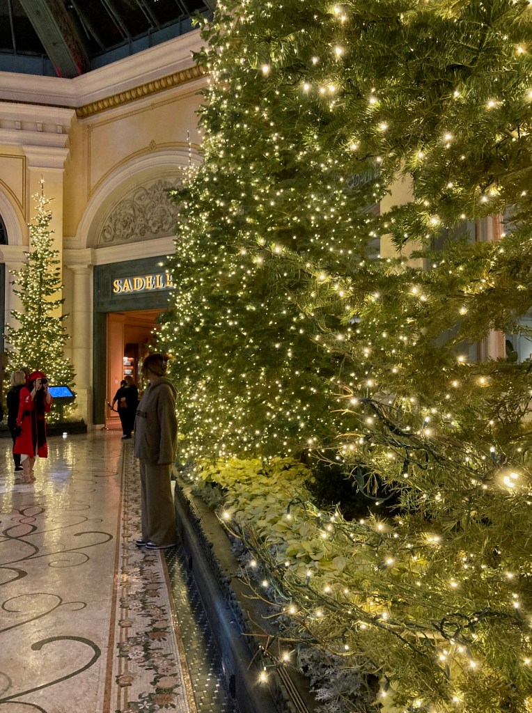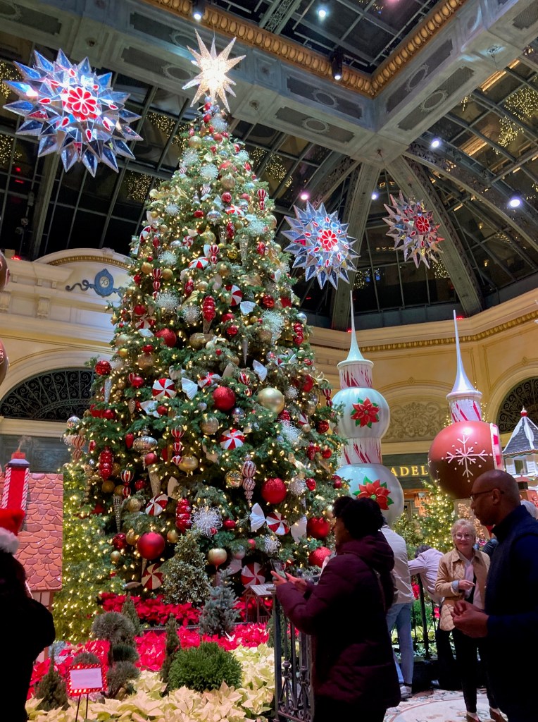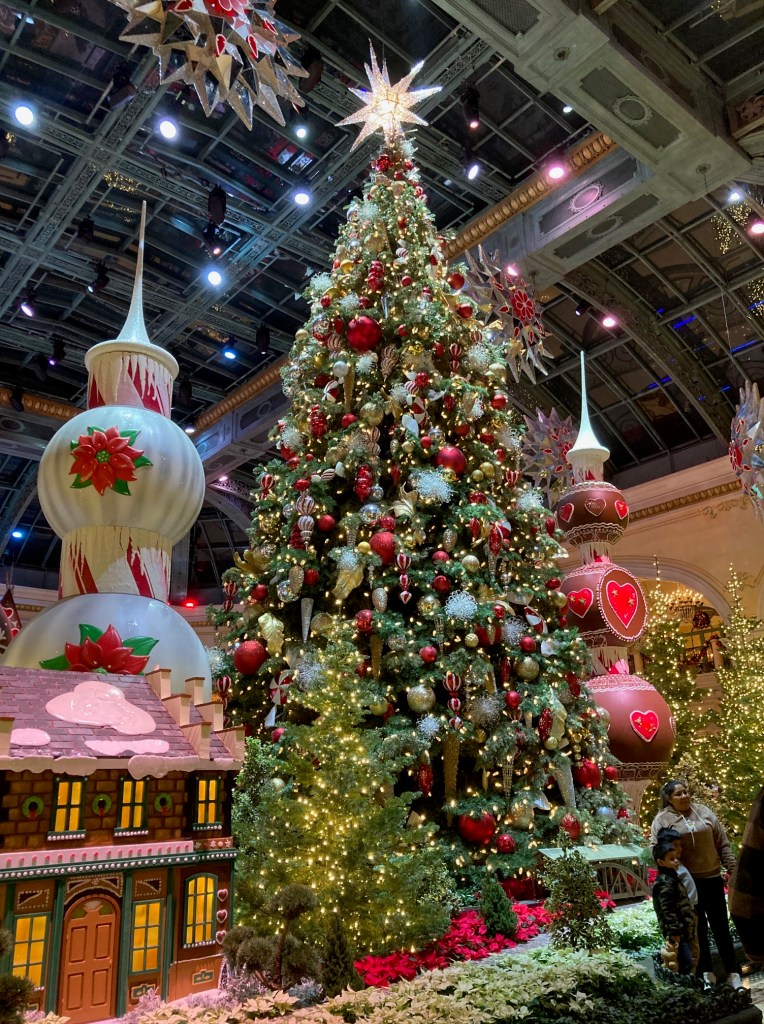 Since I’ve recovered from getting my second booster shot and didn’t get a fever but did have a sore arm and a raging headache, I decided to go see some holiday decorations and the views of Las Vegas valley one more time before I start my new job. Here are the photos in all their glory. Even though it was Monday, people were clamoring to see the decorations at Bellagio and fewer people were at Wynn but still impressive. I was actually able to find parking at the Fashion Show Mall and got to see it for the first time. There were many things I would’ve loved to buy, but I remained handless minus ice-tea and pretzels.