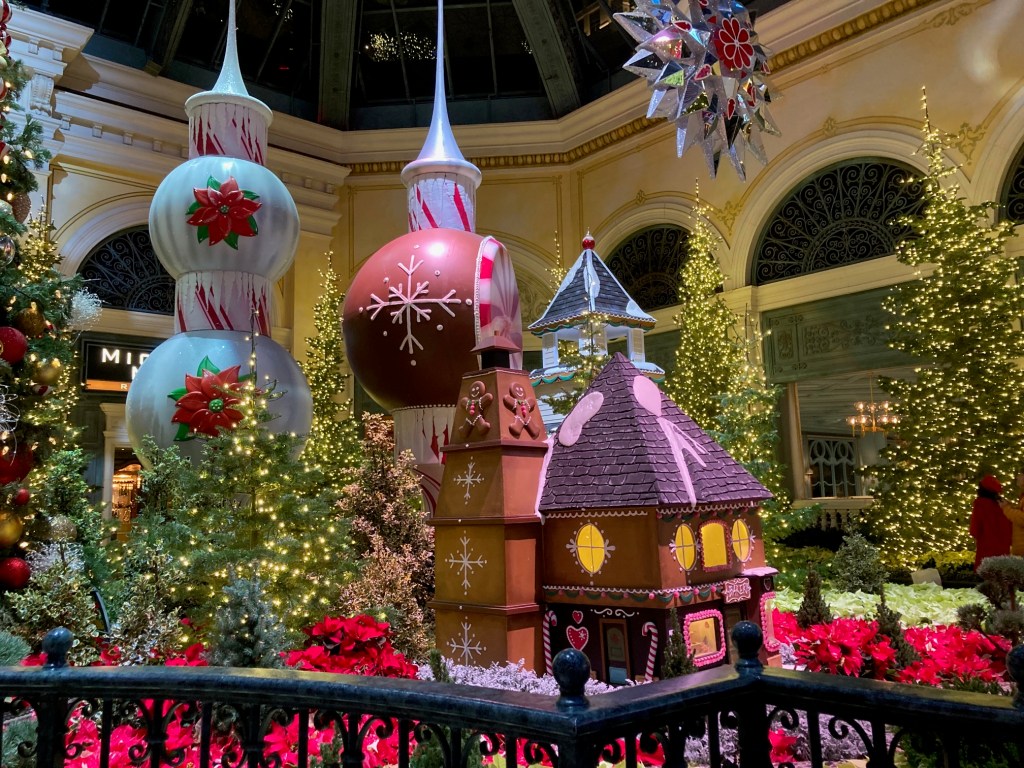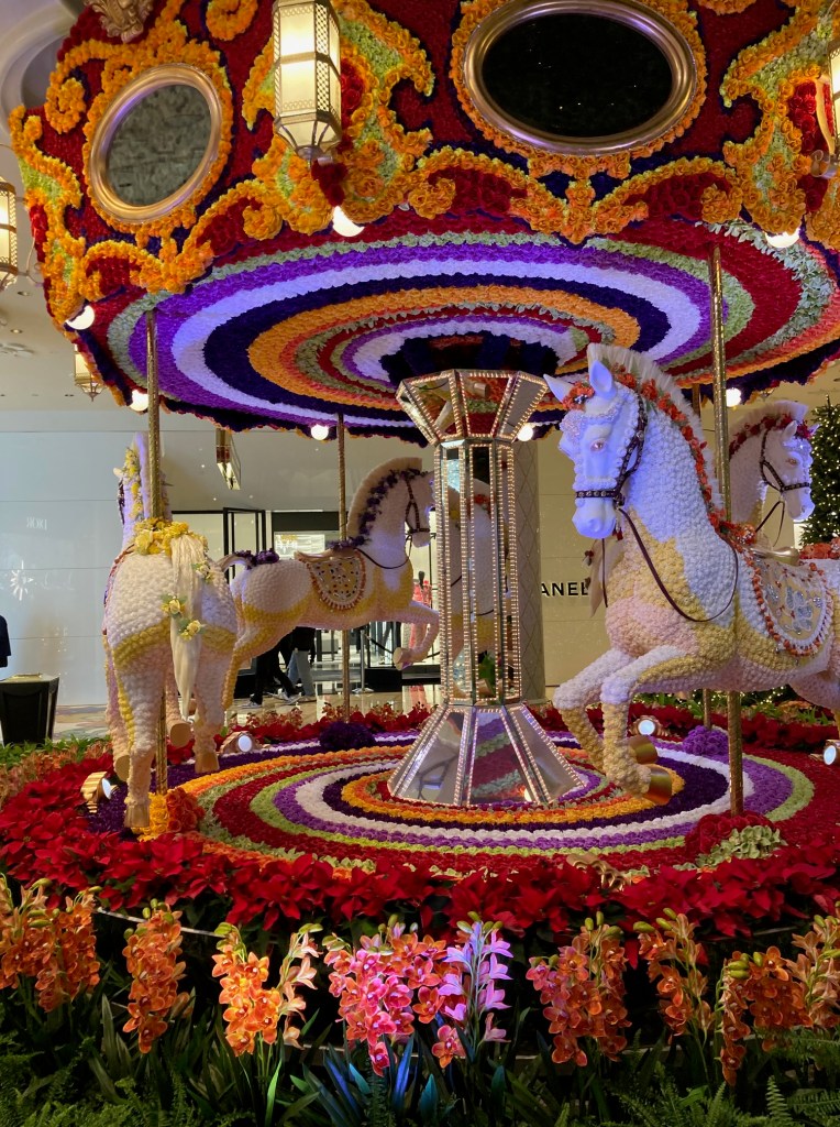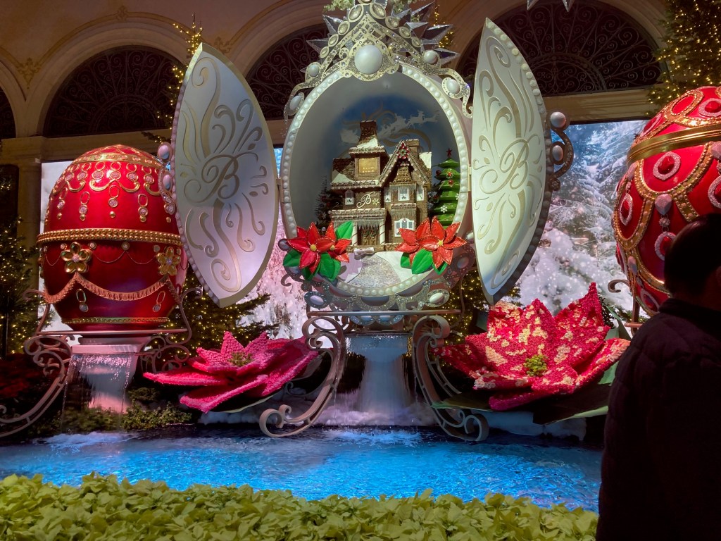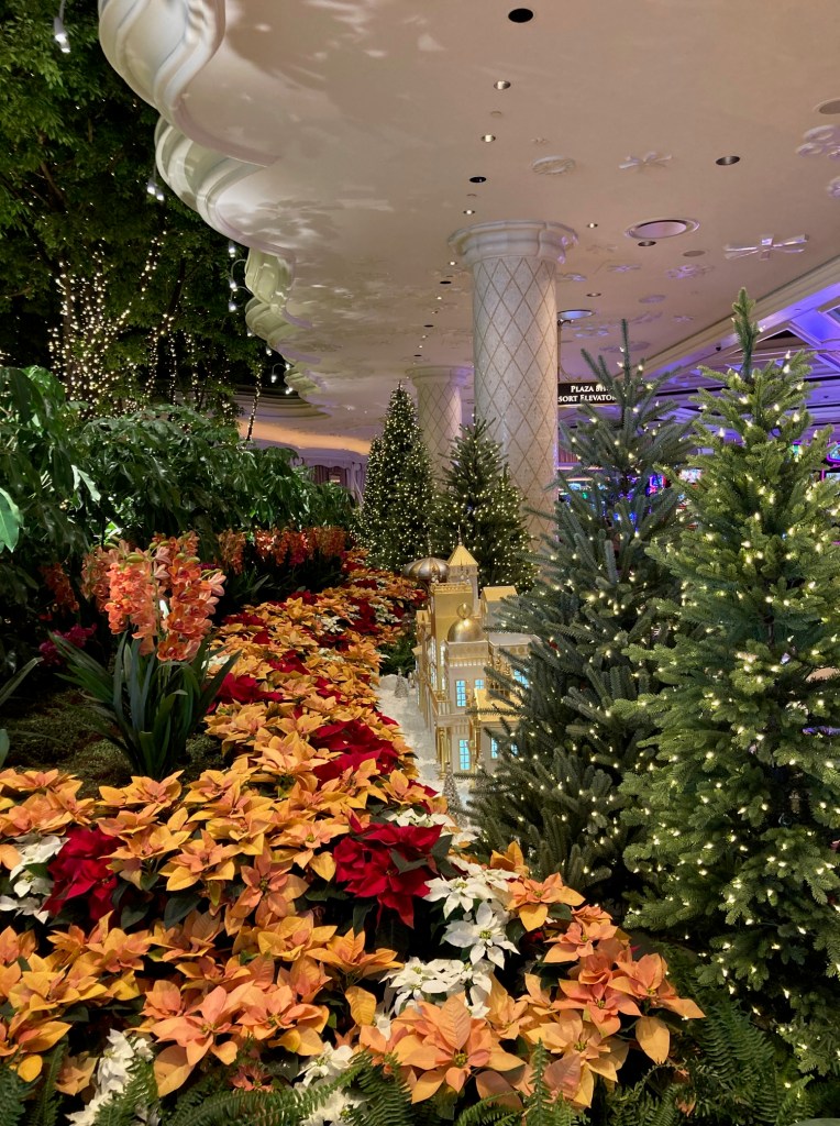 Since I’ve recovered from getting my second booster shot and didn’t get a fever but did have a sore arm and a raging headache, I decided to go see some holiday decorations and the views of Las Vegas valley one more time before I start my new job. Here are the photos in all their glory. Even though it was Monday, people were clamoring to see the decorations at Bellagio and fewer people were at Wynn but still impressive. I was actually able to find parking at the Fashion Show Mall and got to see it for the first time. There were many things I would’ve loved to buy, but I remained handless minus ice-tea and pretzels.