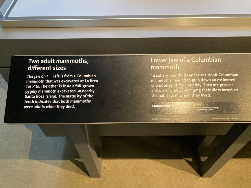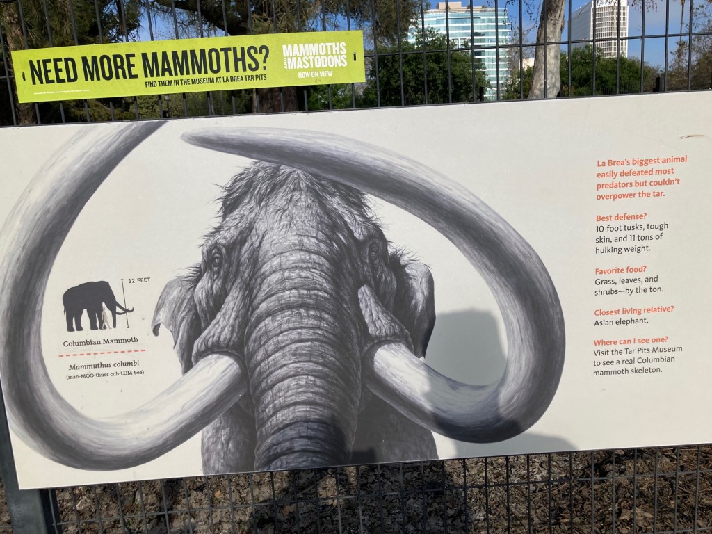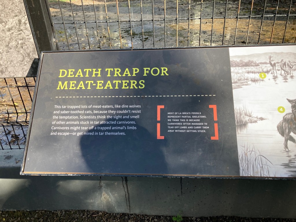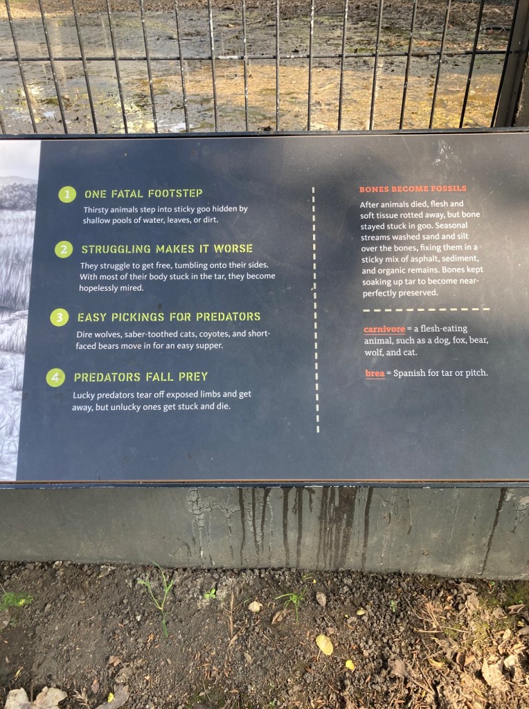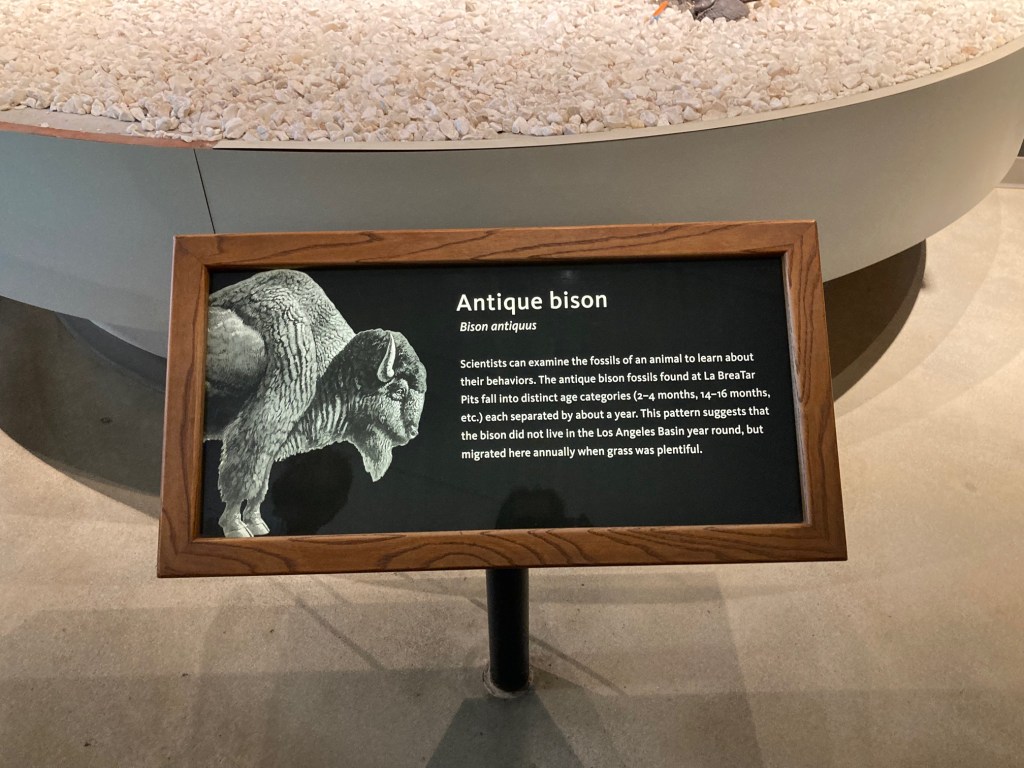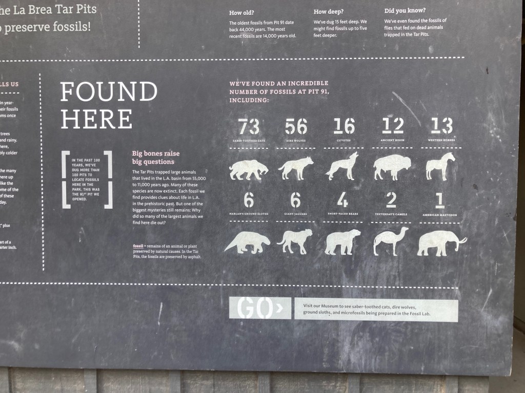 I used to edit my photos beforehand, making them more presentable, but today not so much. Here are the photos from my very quick visit in the La Brea Tarpits Museum because I had about 50 minutes to see everything inside. I was able to see more outside at a leisurely pace. It was the first day of walking quite a bit as the other time was when I went to the Malibu Pier. It was interesting to see the skeletons of animals that got stuck and died in the tarpits. I’d like to go back again, but more than likely I’ll visit a different museum if given the chance.