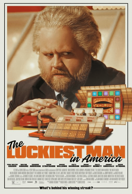 The Luckiest Man in America (2024) is about Michael Larson who won a large amount of money on “Press Your Luck” in 1984. It stars Paul Walter Hauser, Walton Goggins, Shamier Anderson, David Strathairn, Maisie Williams, Brian Geraghty, Patti Harrison. It is rated R and one hour and 31 minutes.