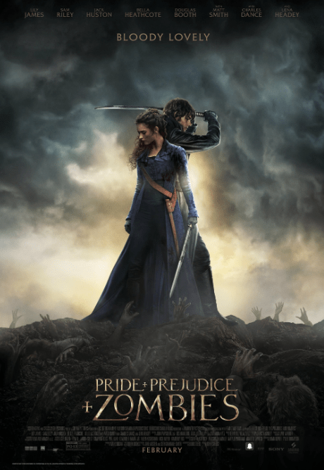 Pride and Prejudice and Zombies (2016) is about five sisters protecting themselves from zombies. It stars Lily James, Jack Huston, Sam Riley, Bella Heathcote, Ellie Bamber, Millie Brady, Douglas Booth, Suki Waterhouse, Sally Phillips, and Charles Dance. It is rated PG-13 and one hour and 48 minutes.