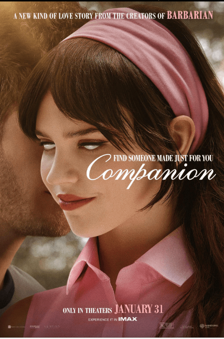 Companion (2025) is an R rated movie about how one incident can change everything among a group of friends on vacation. The running time is one hour and 37 minutes and directed by Drew Hancock. The movie stars Sophie Thatcher, Jack Quaid, and Lukas Gage.
