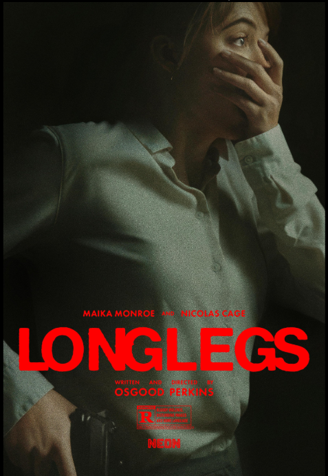 Long Legs (2024) is an R rated movie about an FBI agent with a skill set to help solve decade long murders. The running time is one hour and 41 minutes and directed by Osgood Perkins. The movie stars Blair Underwood, Maika Monroe, and Nicolas Cage.